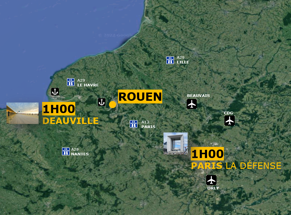 - Le territoire dispose également d’un aéroport de tourisme d’affaires « Rouen Vallée de Seine », à 10 minutes de Rouen.